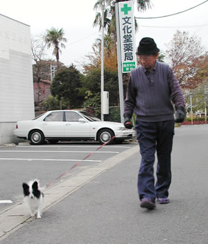 愛犬の「コウ」ちゃんを散歩させる