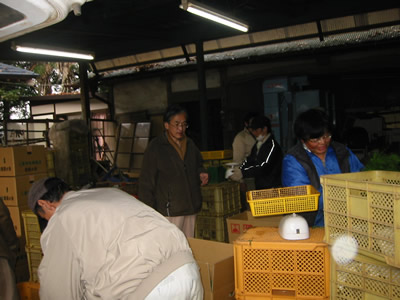野菜の出荷作業を手伝いながら。右が鈴木加代子さん