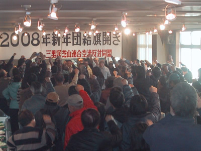 新年デモおよび旗開きで反対同盟が発した2008年闘争宣言を掲載します。 新年デモ・旗開きに続き、1月15日の市東さんの裁判闘争に連続して立ち上がりましょう。 (デモと旗開きの詳細は後日)