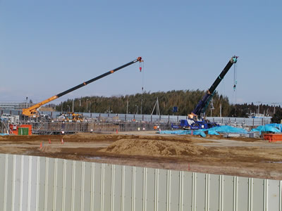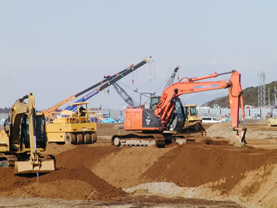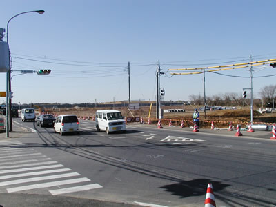団結街道北端部分で行なわれている北延伸工事。航空機が待機したり、すれ違ったりするための誘導路建設に向けた整地工事の準備だ。