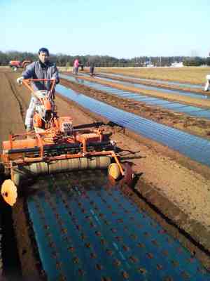 木曜、トンネル人参の種まき、種まき機を使って、順調に6本のトンネルを張る事が出来ました。作業手順は機械で種まきした以外、先週の大根のトンネル作業と同じです。明日から待望の葉物(ホウレン草が入ります\(≧▽≦)丿ネギ苗の草取り、後、半日で草取りは終了しそうです。