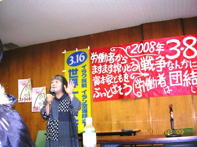 ■3月9日、東京コア・いけぶくろで行なわれた「3・8国際婦人デ−行動」に反対同盟婦人行動隊の宮本麻子さんが参加して発言し、共に集会の成功を勝ち取りました。発言は後日掲載します。