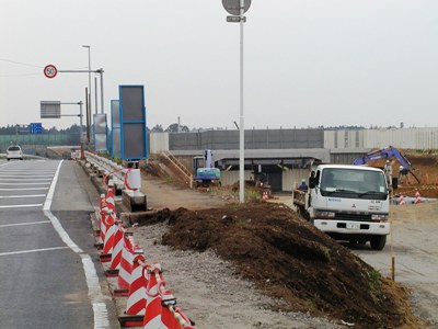 国道51号線ではトンネル工事を突貫で行なっている(左が51号線、右がトンネル=3月28日撮影)。このような北延伸攻撃を吹き飛ばす結集をお願いします。