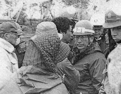 (写真の解説)1988年春、収用委員会審理の再開にむけ圧力を強めた空港公団は、三里塚現地でも、自主耕作地破壊などで敷地内農民への攻撃を強めてきた。(写真は市東東市さん自主耕作地破壊に対して闘う反対同盟=3月30日)