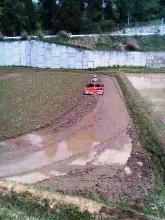 水曜、人参のトンネルはがし、明日は田んぼ仕事。シロかき(田起こしした、田んぼに水を入れ、トラクターや耕耘機で掻き混ぜ、ドロドロにした土をハシゴで綺麗に均して行く)です。
