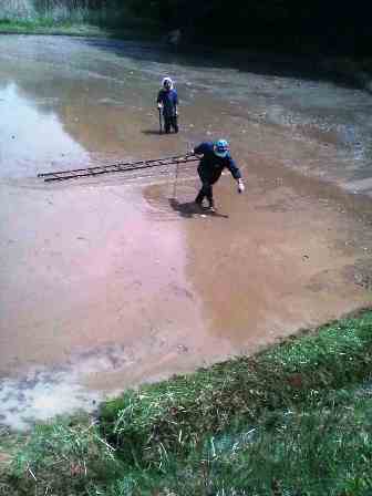 木曜、田んぼ仕事のなかで、1番大変で重要なのがシロかきです!これをいい加減にやると田植えの時に苗が浮いたり!稲刈りの時期に水が抜けなかつたり!と後々大変な目に合います。。°・(>_<)・°。その為、ハシゴを使って、何度も土を均しながら引っ張って行きます!(これが、けっこうキツいす)