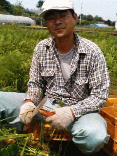 日曜、今日は過ごしやすい一日で、作業がはかどりました。夏の葉物として定着した観があるモロヘイヤの定殖をほぼ午前中に済ませ、その後、掘り起こしてある玉葱の乾燥作業です。萩原さん宅の犬(チャオ)1才も野菜が大好きで特に人参がお気に入り、散歩の途中で畑に転がっている人参を見つけると前足でがっちり挟み、カブリつきます!どうも歯ごたえがたまらないみたいです。
