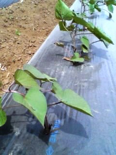 月曜、昨日とうって変って陽射の強い一日でした。仕事の中心は除草作業で作物と作物(サツマイモ、里芋)の間の畝(うね)に管理機を入れ細かい草をうない込みます。これからの農作業は太陽と草との戦いになります、ギラギラと照り付ける太陽の下で屈み草取りをすると、色々対策しても首が日焼けしてしまいます!職業によって焼ける場所が違って来ます。道路関係の労働者はアスファルトからの照り返しで、顔が焼け。逆にゴルフ好きは手袋をする為、手だけ白くなったりと様々です。農民の首の後ろが真っ黒に焼けた姿は、大地と真正面に向き合う農民の勲章です。( ̄^ ̄#)