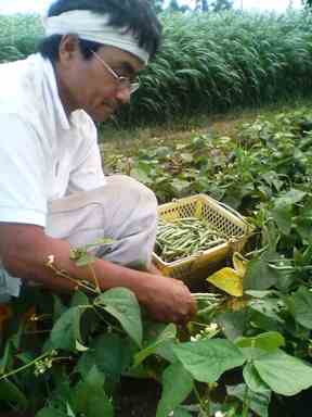 火曜、野菜の出荷作業。13日がお盆休みなので、今日が最後の出荷日です。品目はじゃがいも、玉葱、きゅうり、ナス、ピーマン、オクラ、ミニトマト、モロヘイヤ、インゲンが入りました。ミニトマトは今、絶好調で今回、全コースに入れる事が出来ました。私の記憶では、ミニトマトを作り始めて10年、1度あったかどうかの快挙です!\(≧▽≦)丿写真はインゲンの収穫作業です。