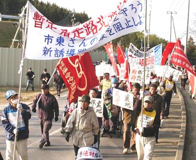 ■12月13日、11月17日に強行された生活道路破壊トンネルへの切り替えを弾劾し、2008年の勝利を確認するとともに、2009年の闘いの突破口を開く緊急現地闘争が80人の結集をえて意気高く闘われました。