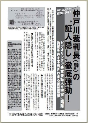 ■裁判長と反対同盟側は3人の証人採用で合意しており、期日まで決まっていたのです(4月23日と6月24日)。しかし、いったん認めた証人について、仲戸川裁判長はこれを取り消し、最終弁論の期日指定(4月23日)を強行したのです。