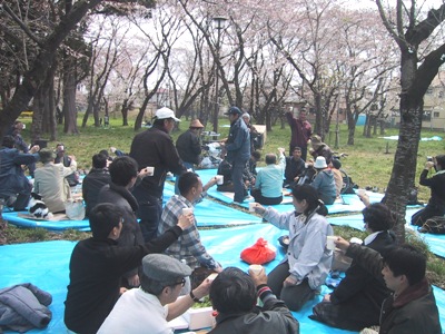 ■会場には、久しぶりに鈴木幸司さんがいとさんと連れだって顔を見せ、仲間と共に花見を楽しみました。