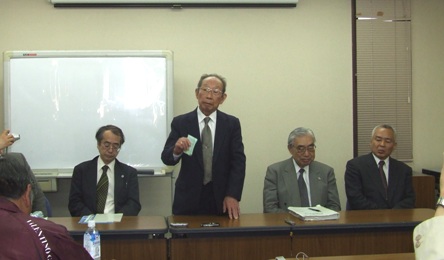 ■北原事務局長の証言が、午前と午後にわたって行なわれました。北原事務局長は、戦争体験の陳述から始め、富里・八街空港案から三里塚への空港の突然の変更、当時、羽田空港に見学に行って、米軍のチャーター便に占拠された「民間空港」の実態をつぶさに認識したことなどを語りました。そして、1966年の天神峰現闘本部の建設の経緯を詳細に説明。同盟員の材木のカンパで建てられたこと、同盟員の大工たちが勤労奉仕で建物を作ったことを明らかにし、さらに、石橋政次が1982年に除名処分になった後に石橋と接触する機会があり、その石橋から「現闘本部の土地は反対同盟に残したものだ」「何に使ってもらってもかまわない」との約束を交わしていたことなどを詳細に述べました。