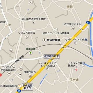 駅から近いので電車が便利ですが、クルマで来られる方は、最寄りの駐車場に止めて下さい。栗山公園には駐車スペースはありません。駐車場は駅周辺や成田山周辺に民間の駐車場があります。