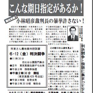 緊急の行動となりましたが、6月12日、日比谷公園霞門に、そして東京高裁にぜひ集まって下さい。