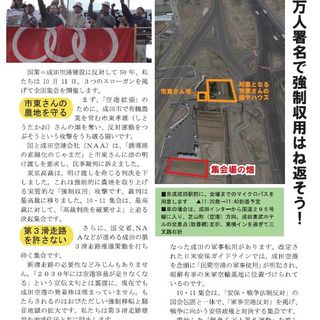 10・11集会は、最高裁による強制収用を許さず、市東さん農地裁判の「高裁判決を破棄」を最高裁に迫る総決起集会です。安倍政権の戦争・改憲と一体となった成田の軍事転用をねらう第3滑走路推進策動を打ち砕く集会です。そして、「安倍政権打倒」を掲げ、戦争法、辺野古新基地建設、福島切り捨て・原発再稼働、TPP、首切り・非正規化などに対する怒りをひとつにして総決起する集会です。