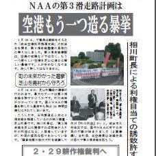 同盟ニュース29号 反対同盟ニュース第29号です。 前の記事でも述べましたように、芝山町会議員選挙(2月14日投票、定数12に14人が立候補)を前に、第3滑走路問題に直接関わる芝山町民に重点的に訴えたニュースになっています。 反対同盟ニュース第29号 トラックバック(0) トラックバックURL