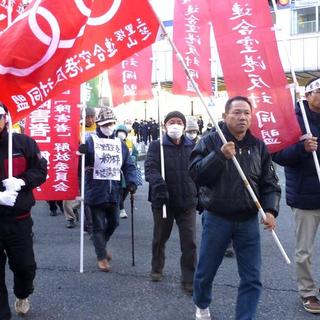 こんなやり方に負けるわけにはいきません。3月2日に始まる請求異議裁判も予断を許しません。ひとつひとつの攻防が文字通り力勝負です。執行停止を確定し、請求異議裁判の早期結審を許さず、大きな反撃の闘いとするために、ぜひともご協力をよろしくお願いいたします。(写真は千葉市葭川公園から千葉地裁に向けたデモ行進)