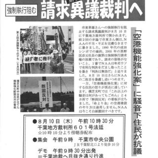 請求異議裁判の内容と横芝光町住民の行動を紹介して、空港会社を串刺しに批判し、8月10日の裁判闘争への結集を訴えました。