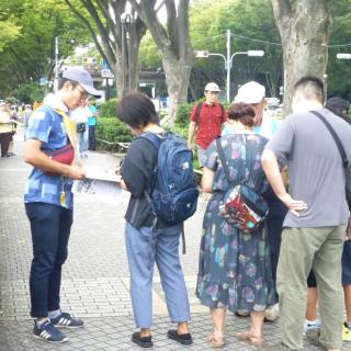 9月17日、代々木公園で開催された「さよなら原発集会」におもむき、参加者に請求異議裁判署名を呼びかけ、またカラービラを配布して10・14集会の結集を訴えました。9・27裁判当日の署名提出に向けた最後の大きな署名行動です。