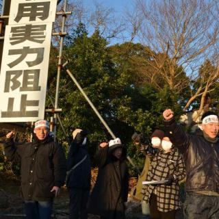 (左)深夜の座り込み/(右)朝の天神峰