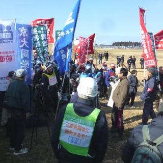 午前10時30分、市東さん宅南側の開拓組合道路に集まり、「市東さんの農地を守ろう」とデモ行進に立ち上がりました。