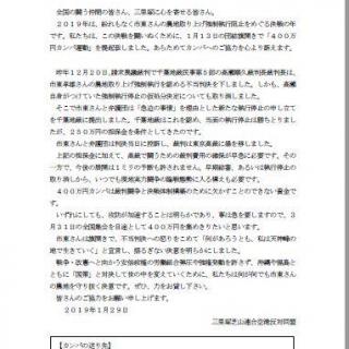 いずれにしても、攻防が加速することは明らかであり、事は急を要しますので、3月31日の全国集会を目途として400万円を集めきりたいと思います。