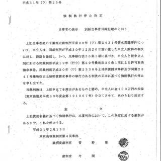 しかし、今度は新たに100万円の担保金を条件としてきたのです。昨年末に千葉地裁で認めさせた執行停止の担保金250万円とあわせて350万円です。