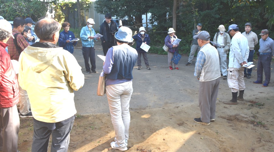 朝の打ち合わせでは、萩原富夫さん、市東孝雄さんが10・13全国集会での労をねぎらい、伊藤信晴さんが機能強化推進派の動きや移転の状況など芝山町の現況を報告して全体で確認しました。